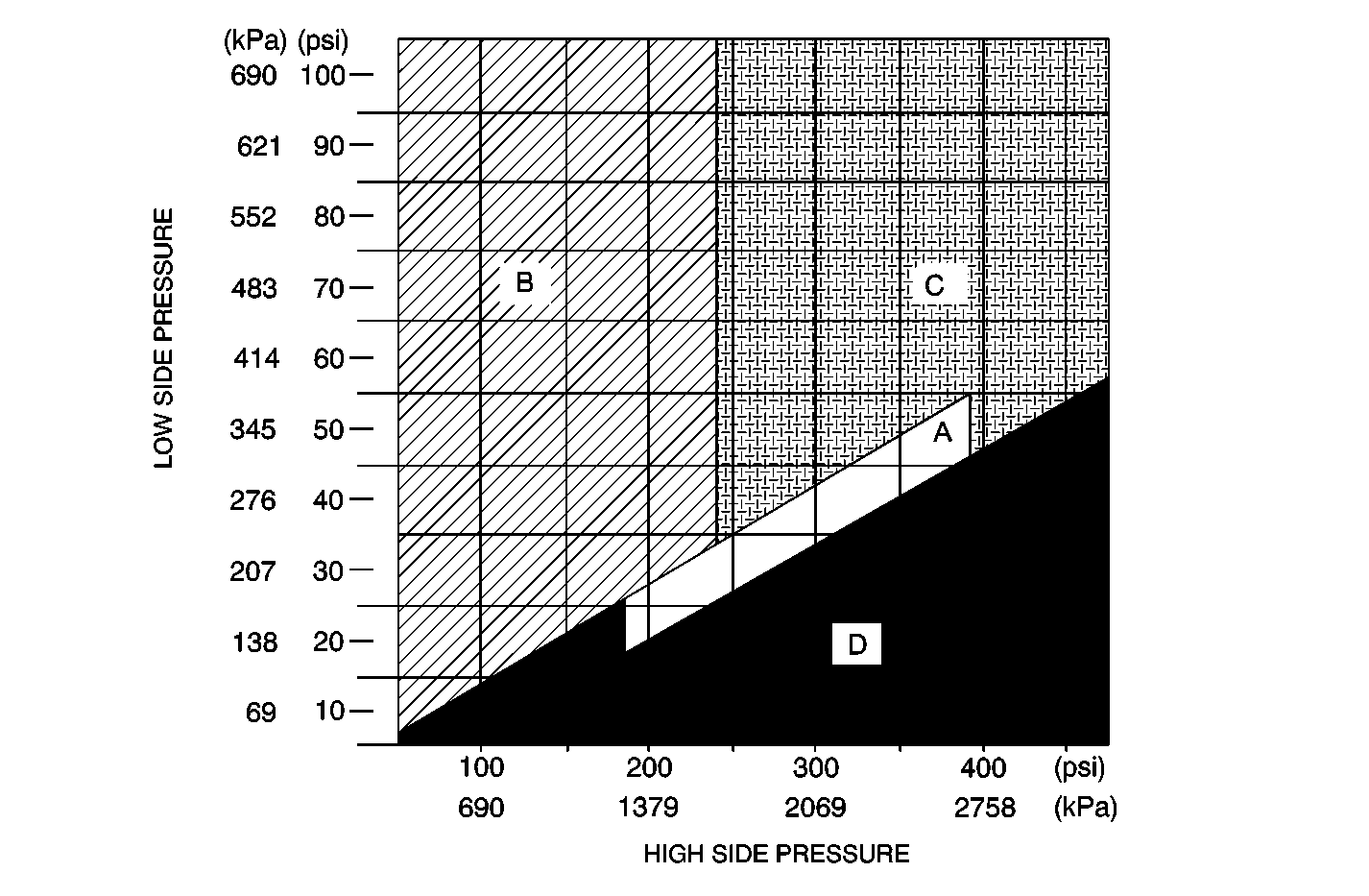 8 | Do the pressures fall within Zone D? | -- | Go to Cooling Insufficient - Air Conditioning (A/C) System - Pressure Zone D | |||||||||||||||||||||
