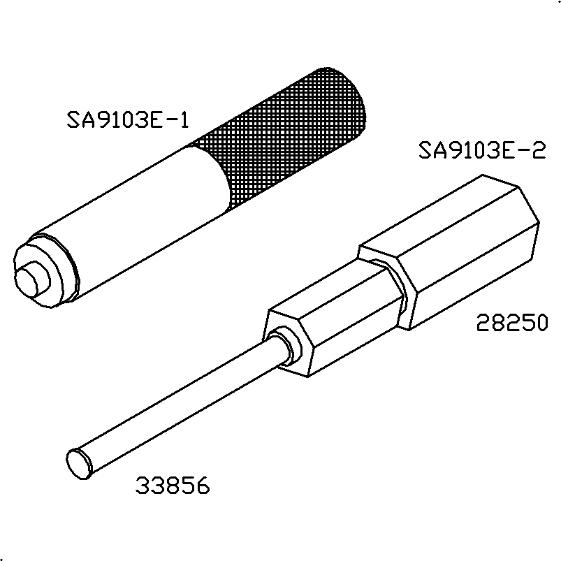 - Install the crankshaft timing gear retaining service tool SA9104E